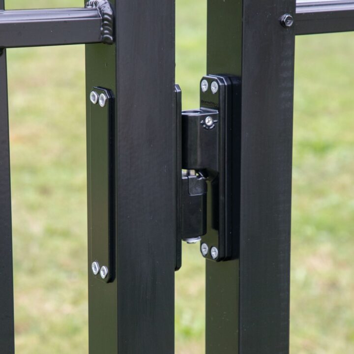 Standard Center Mount Hinges offer a versatile 180 degree gate swing, enabling the gate to open both inward and outward. Designed with a convenient stay-open feature which holds the gate open, these hinges also allow for customization of the resistance and speed of gate closures.